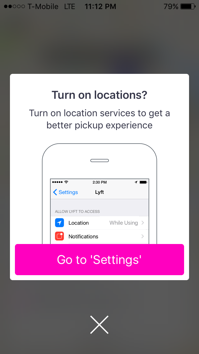 - Lyft uses these big modal windows sparingly and avoids disrupting the user experience.